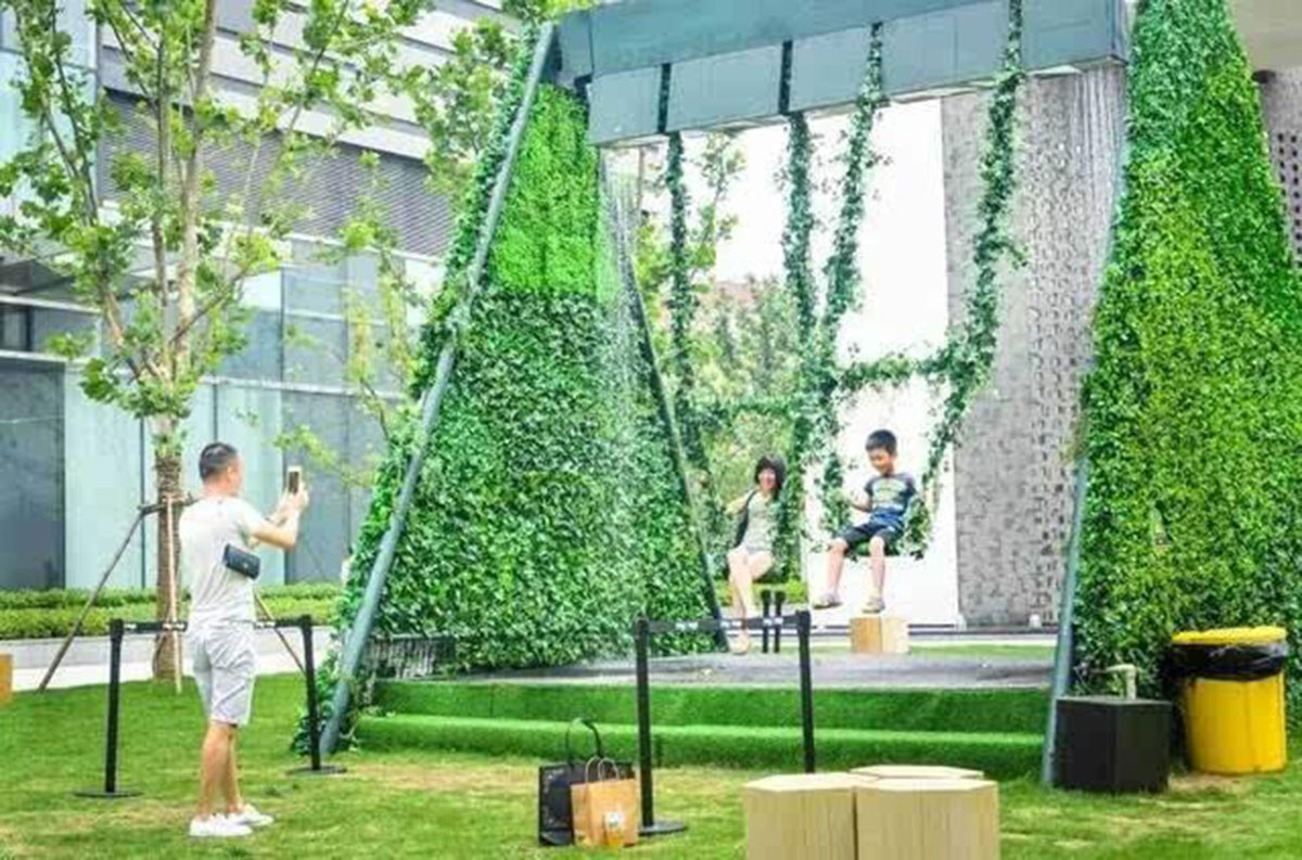 2、室外樂(lè)園可設(shè)單、雙或多人秋千,通過(guò)圓形或 S形等異形布置,營(yíng)造豐富的秋千視野,這樣可以帶給游人更多的秋千氛圍感,在我們的建設(shè)中,有更多采用此種布置的秋千樂(lè)園,獲得明顯的好評(píng),受到廣大游人群體的喜愛,還有一些整木秋千,被賦予一定的團(tuán)隊(duì)拓展功能。