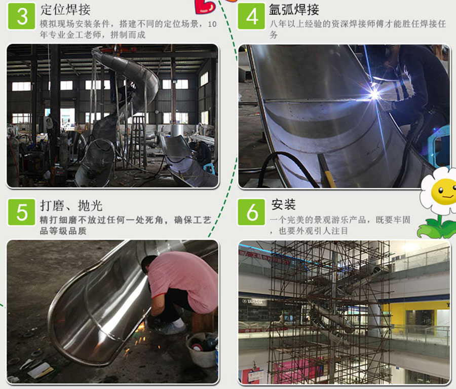 為什么市面上的不銹鋼滑梯都使用304不銹鋼!首先,什么是304不銹鋼,304不銹鋼是不銹鋼中常見的一種材質(zhì),密度為7.93 g/cm3,業(yè)內(nèi)也叫做18/8不銹鋼。耐高溫800度,具有加工性能好,韌性高的特點,廣泛使用于戶外游樂設(shè)施和水上游樂設(shè)備和食品醫(yī)療行業(yè)。市場上常見的標示方法中有06Cr19Ni10,SUS304,其中06Cr19Ni10一般表示國標標準生產(chǎn),304一般表示ASTM標準生產(chǎn),SUS 304表示日標標準生產(chǎn)。