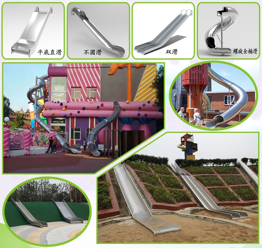 | 適應(yīng)場景 | 游樂場、商場、度假中心、兒童活動中心、酒店、水上樂園 | 主要材料 | 滑梯材質(zhì)為304不銹鋼材質(zhì),厚度3mm,護(hù)管大小為38mm,厚度2.5mm,表面拋光拉絲處理 |