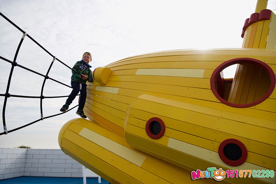 戶外非標(biāo)游樂設(shè)備—潛艇組合游樂作為一款新型的戶外大型游樂設(shè)備,在整體的結(jié)構(gòu)上具有著強(qiáng)有力的吸引優(yōu)勢(shì),在整個(gè)設(shè)備內(nèi)部結(jié)構(gòu)分工明顯,包含了對(duì)于孩子攀爬能力的考驗(yàn),以及智慧闖關(guān)的能力。